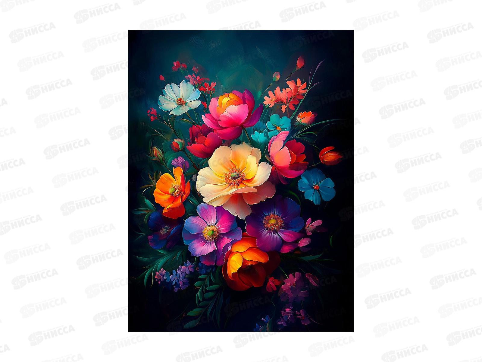 Код:598760; Холст с красками 30х40см Цветы на темном фоне, ХК-3271