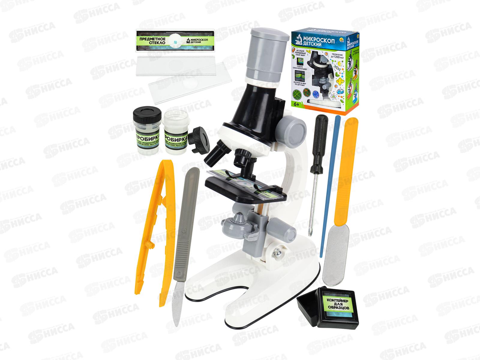 Код:476831; Микроскоп белый "Юный лаборант" (19х8,5х24см) ИК-7636 *24