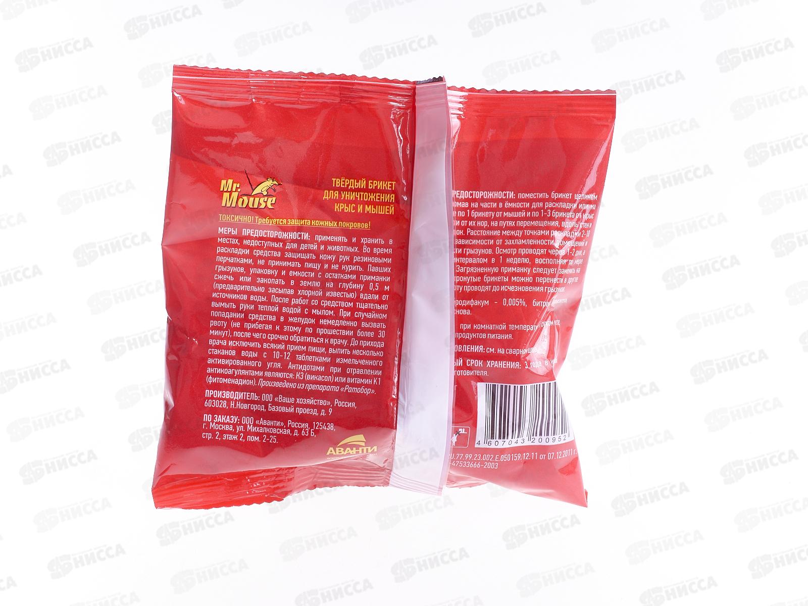 Mr. Mouse парафин твердый брикет от грызунов 100гр пакет *50