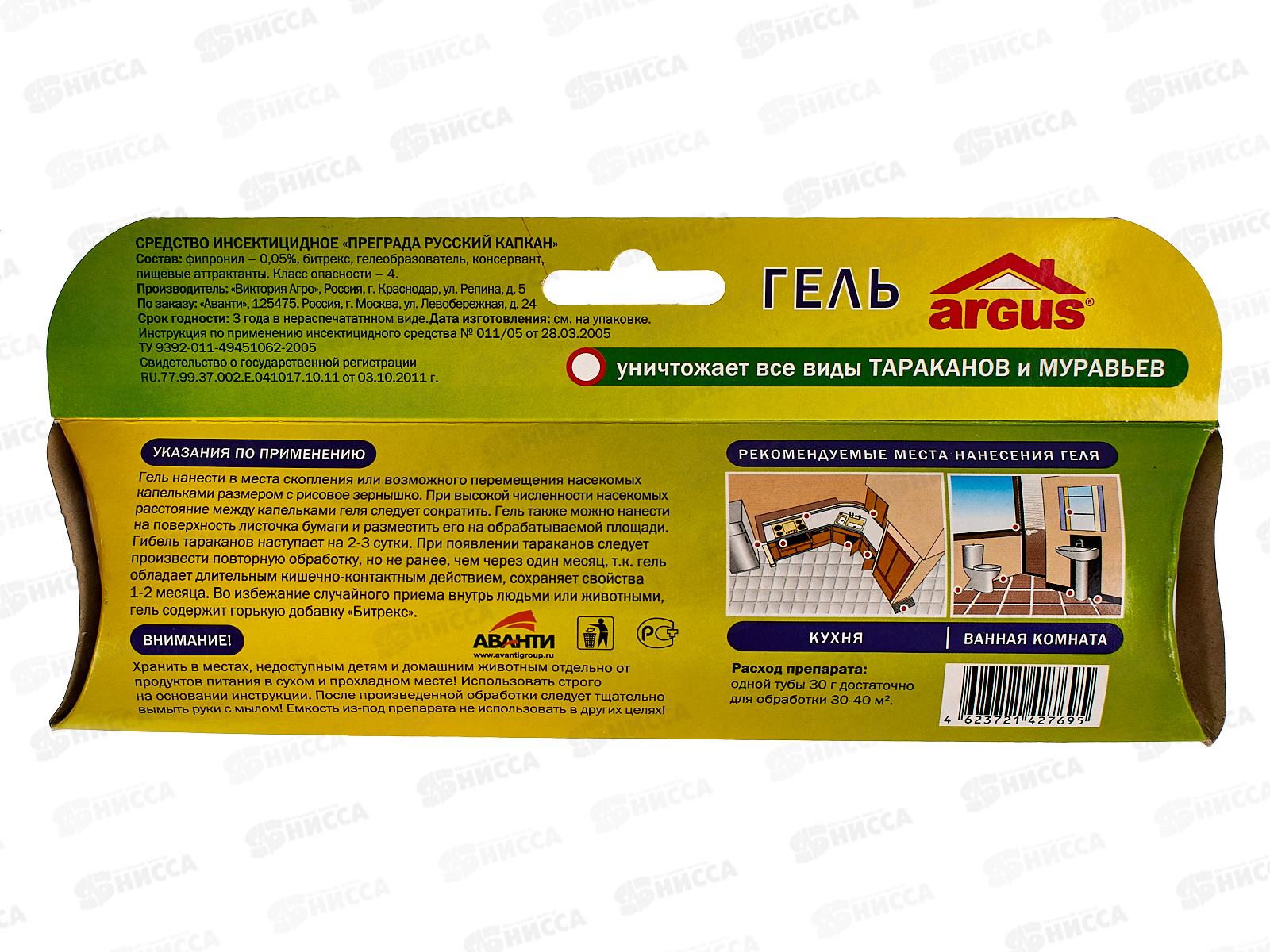 АРГУС гель-шприц от тараканов и муравьев 30г *50 AR-695
