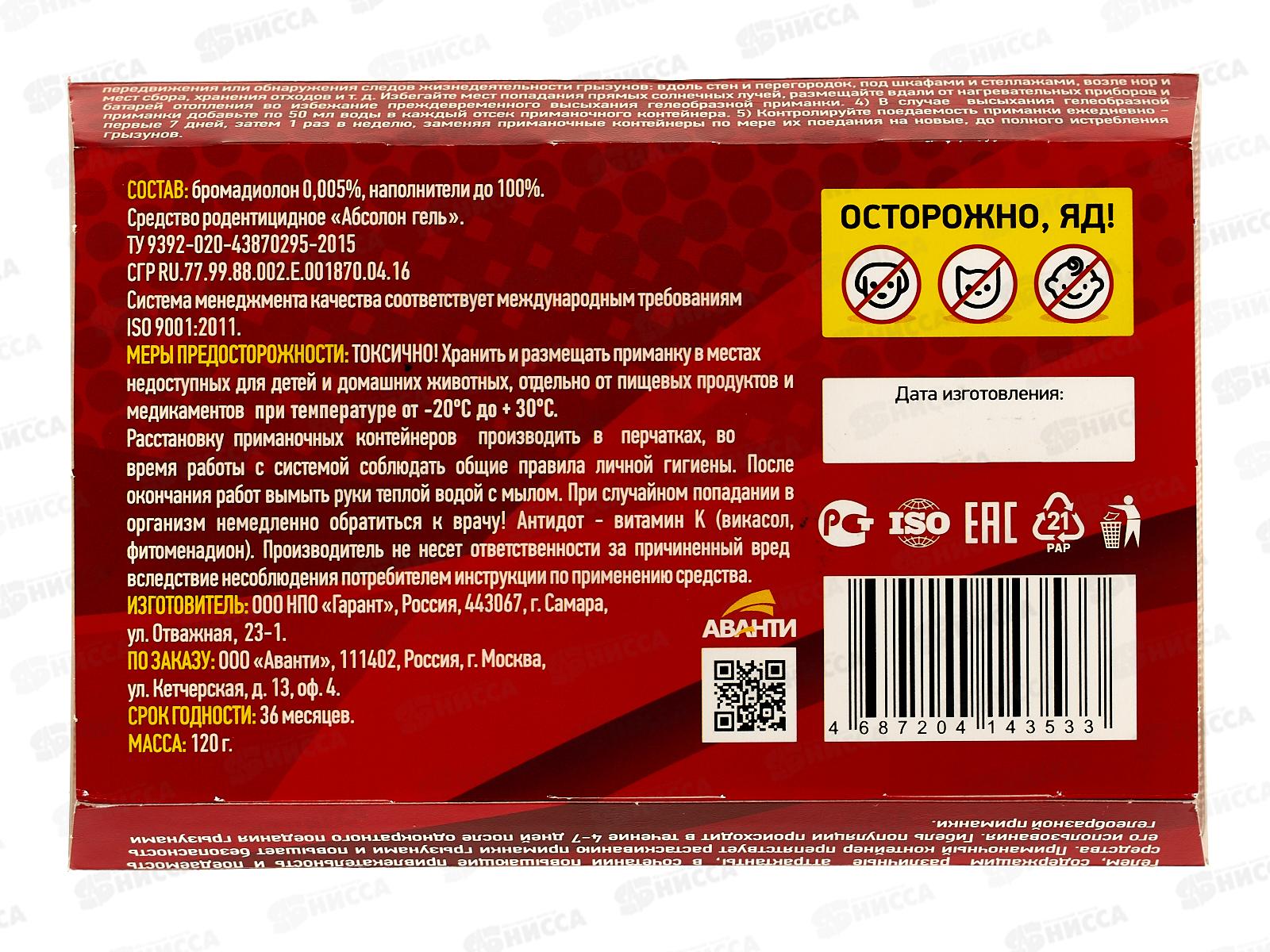 Mr. Mouse родентицидный препарат гель от грызунов 120мл, MR-3533 *24
