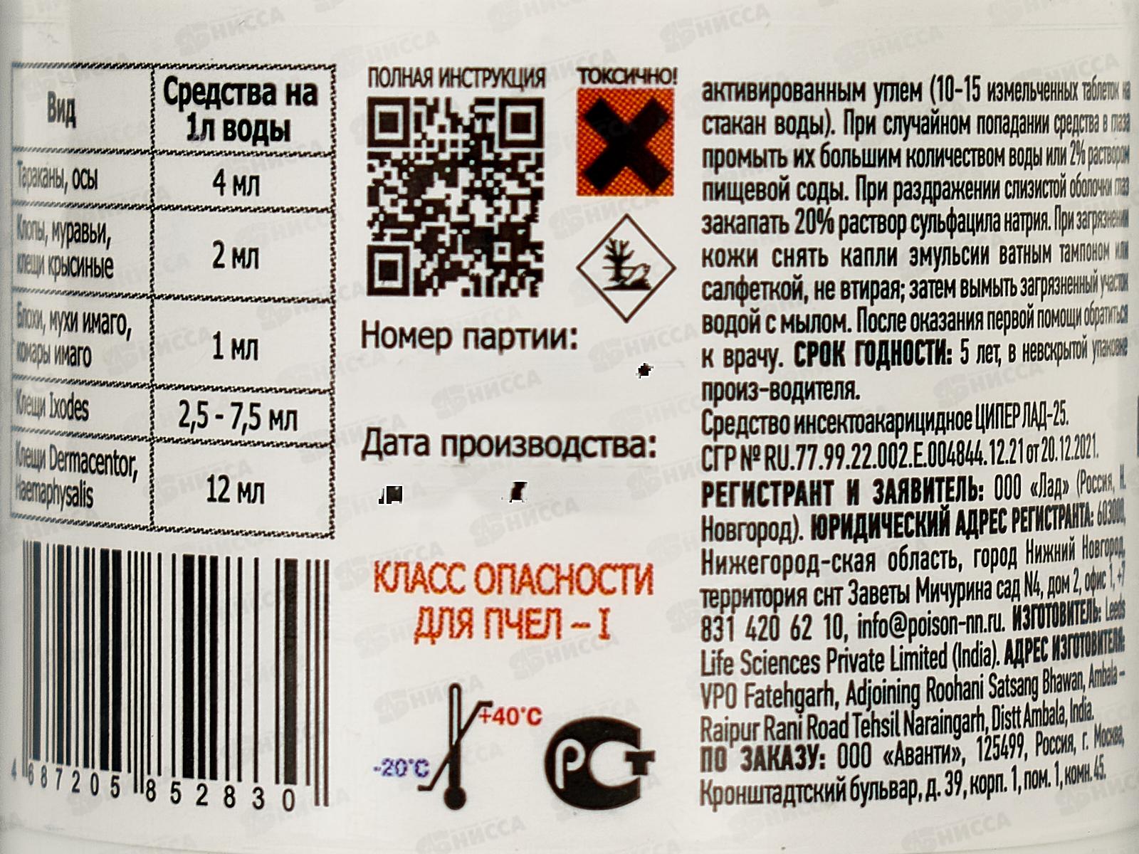 АРГУС 50мл флакон (циперметрин 25%) Индия AR-2830 *32