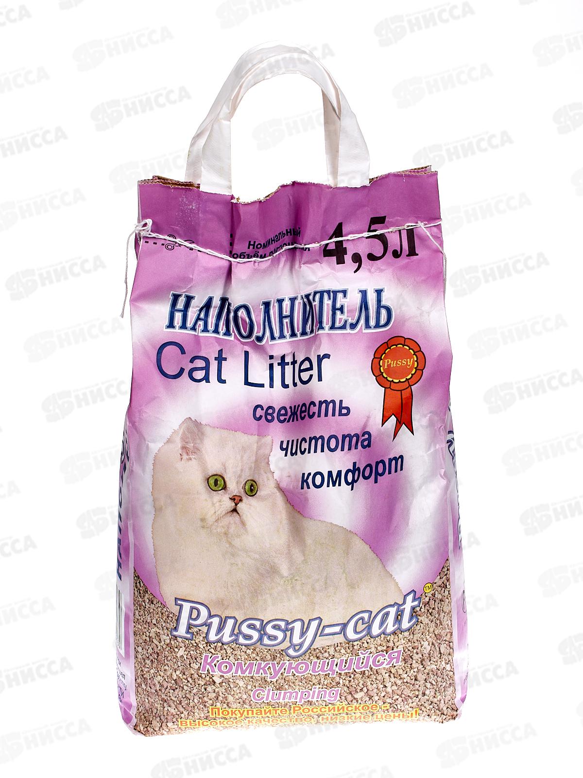 Код:099758; Наполнитель комкующийся для кошачьих туалетов Пусси-кэт 4,5л *3