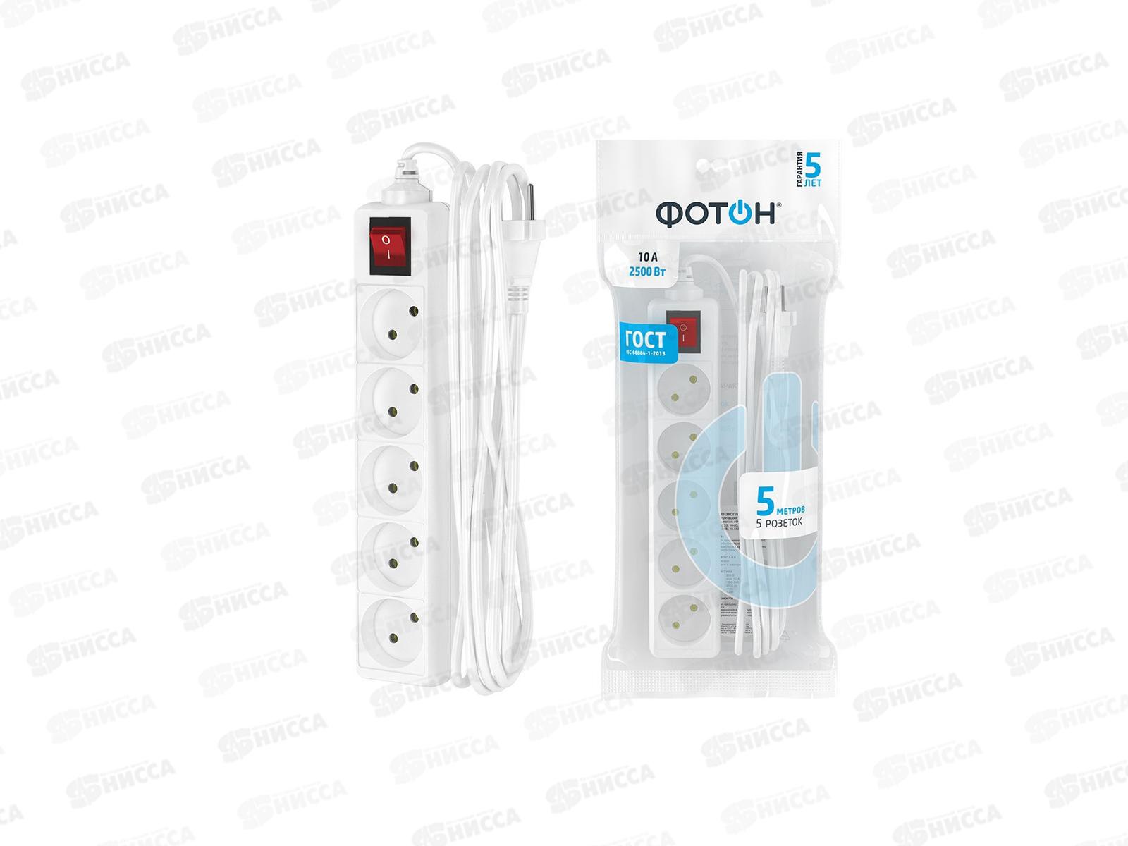 Код:044343; Удлинитель ФОТОН 10-55S (1*5) 5м 10А с выключателем, белый *20