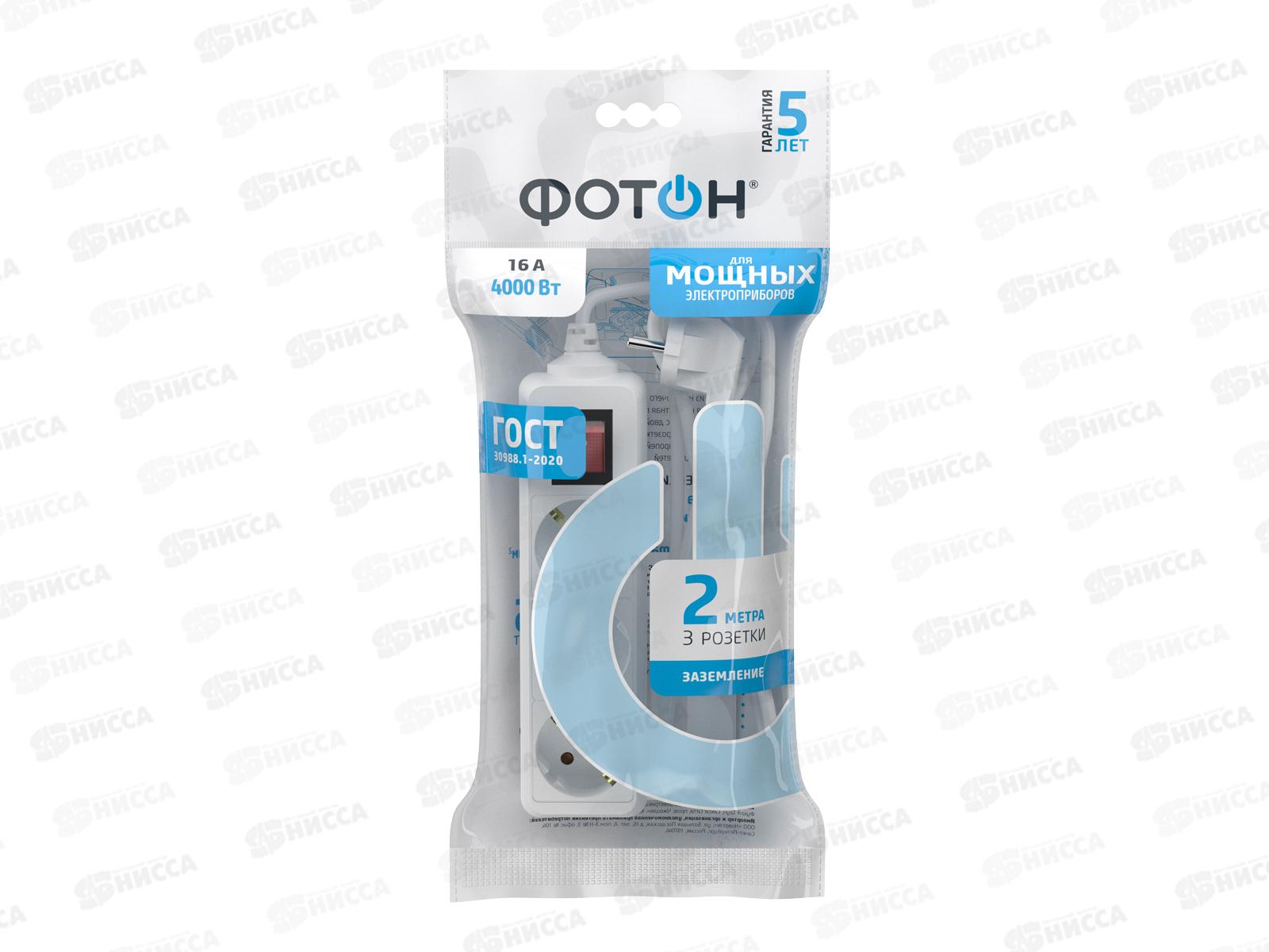 Код:012101; Удлинитель ФОТОН 16-23E (1*3) 2м 16А с заземлением белый *20
