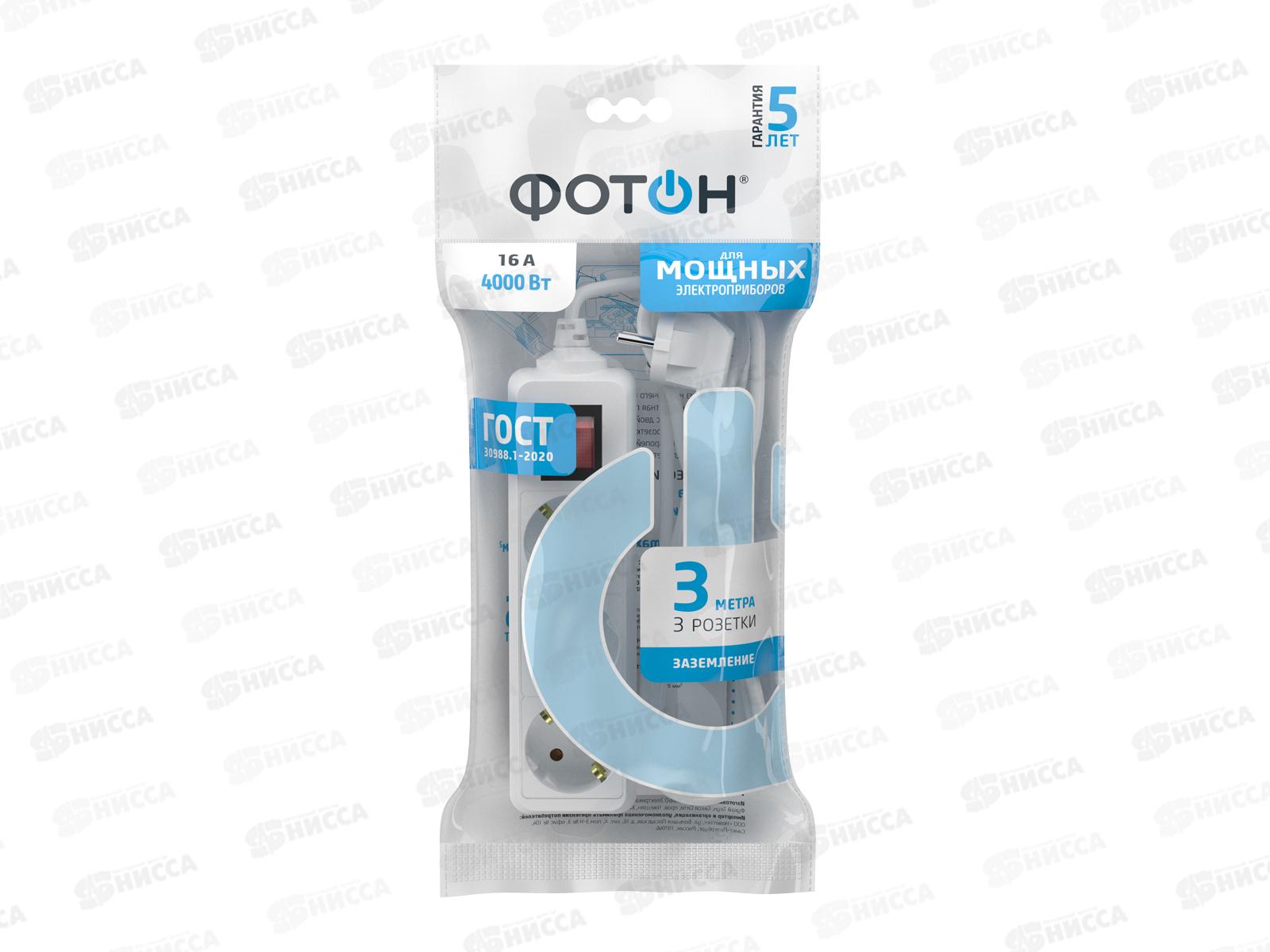 Код:010489; Удлинитель ФОТОН 16-33E (1*3) 3м 16А заземлением белый *20