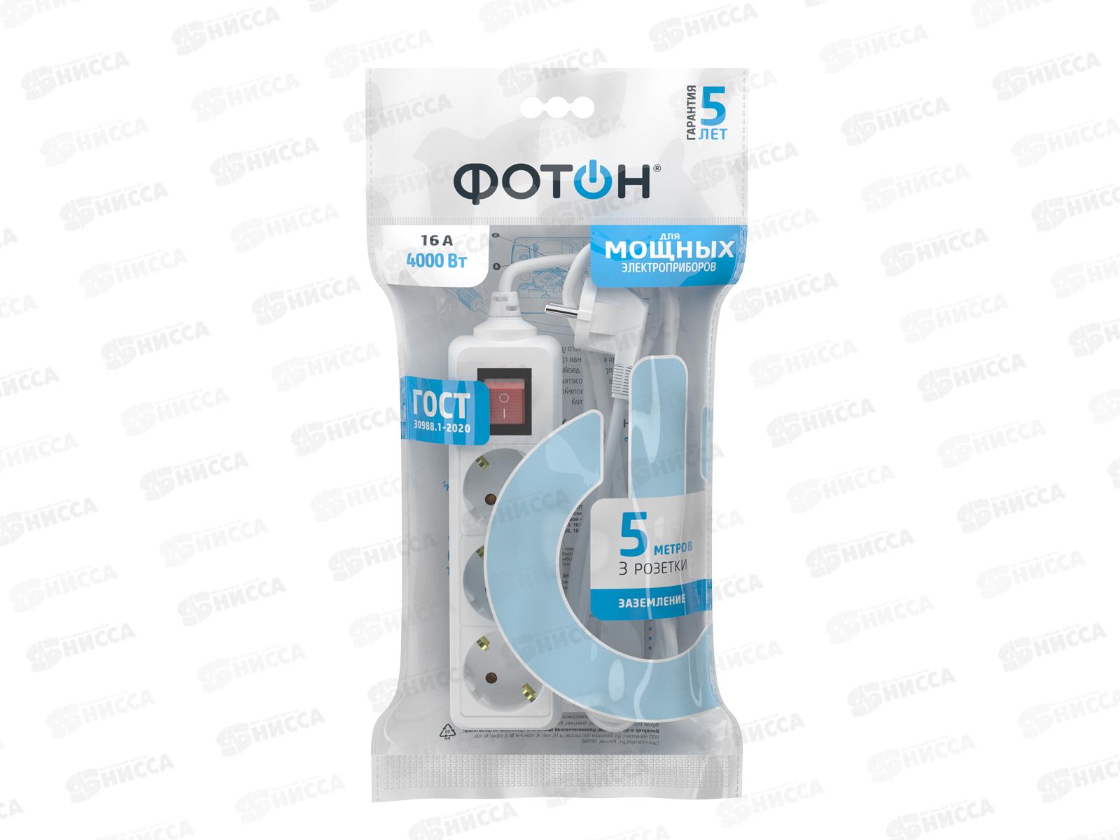 Код:010490; Удлинитель ФОТОН 16-53E (1*3) 5м 16А с заземлением белый *20