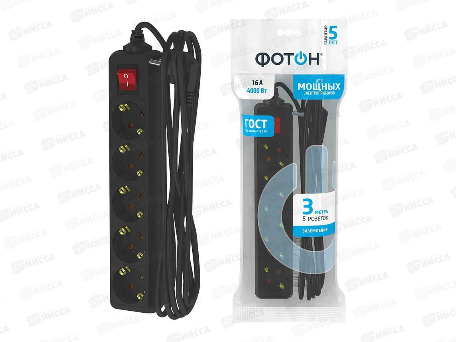 Код:548553; Удлинитель ФОТОН 16-35ES (1*5) 3м 16А с заземлением, черный *20