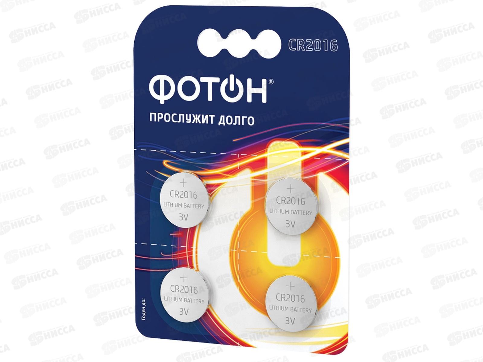 Код:359258; Батарейки Элемент питания ФОТОН CR2016, BP4, литиевый 3В *4/80/480
