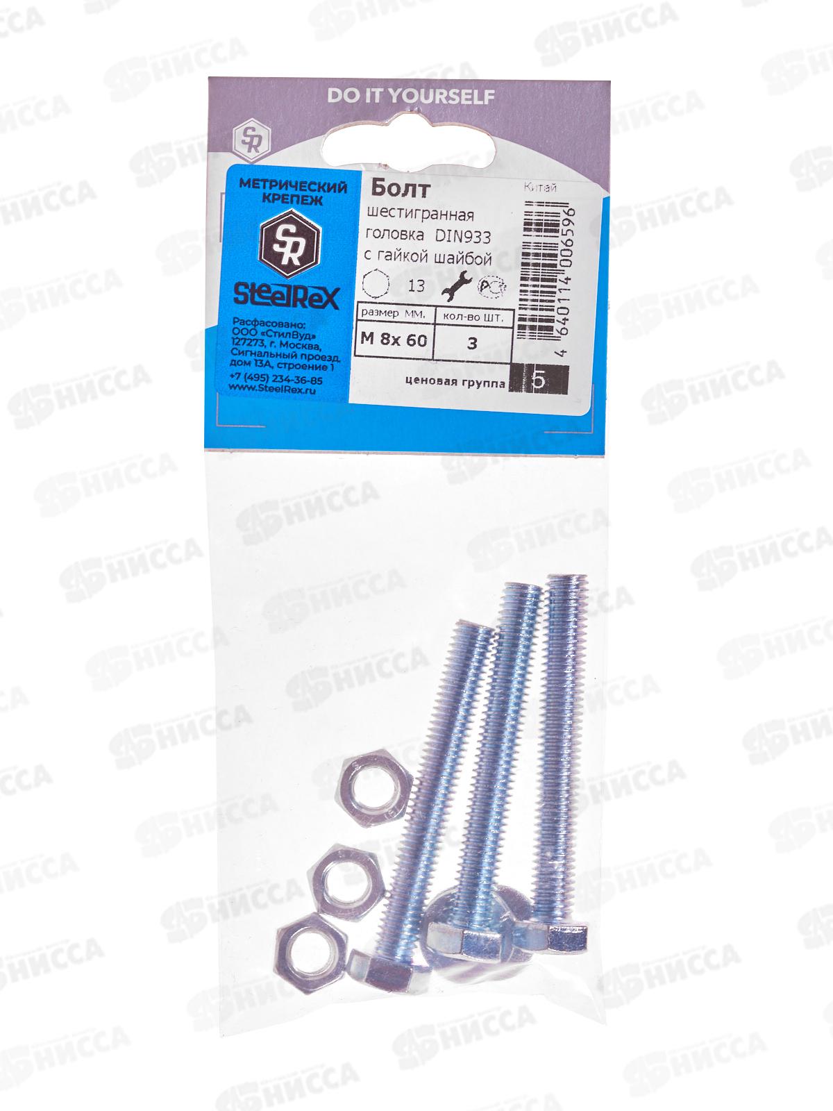 Код:594239; Болт SR (DIN933) М 8*60 с гайкой и шайбой 3шт