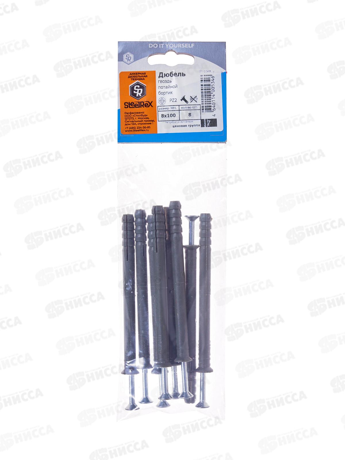 Код:594281; Дюбель-гвоздь, потайной бортик РОССИЯ 8х100 8шт SR