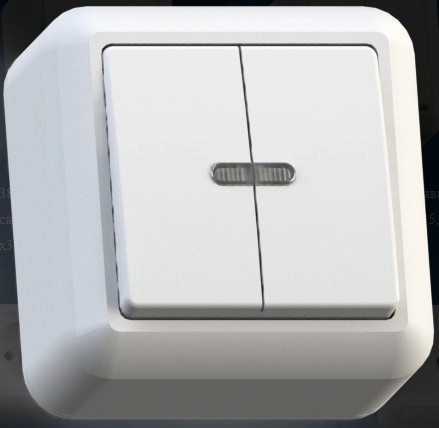 Код:140763; Выключатель открытой установки А56-183 2-х клавишный с подсветкой Елизавета *60
