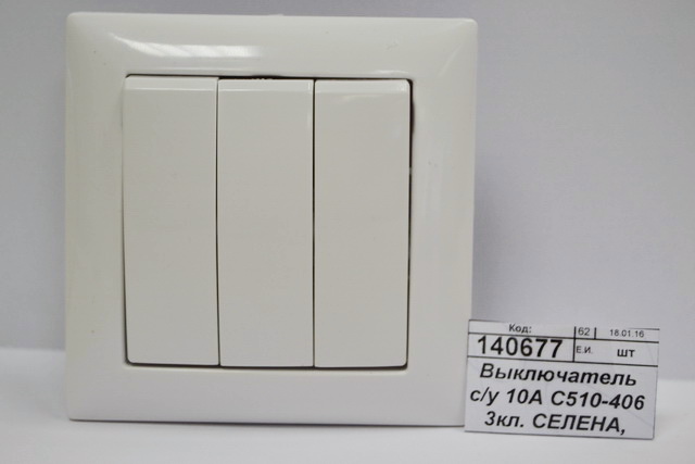 Код:140677; Выключатель скрытой установки 10А С510-406 3-х клавишный СЕЛЕНА, 406 *60