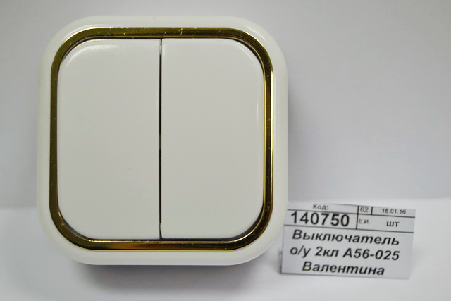 Код:140750; Выключатель открытой установки 2 клавишный А56-025 Валентина золото *60