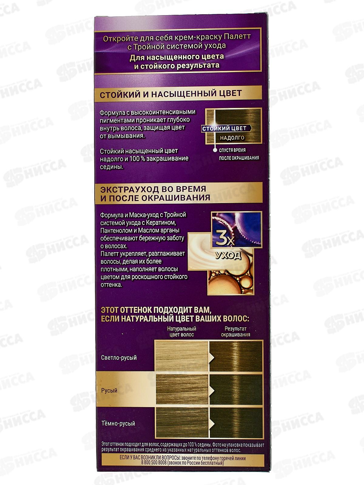 Откройте для себя Стойкую крем-краску Палетт с Тройной системой ухода с Кератином, Пантенолом, Nutri-маслом, обеспечивающей бережную заботу о волосах. Формула с высокоинтенсиными пигментами глубоко проникает в структуру волоса, защищая цвет от вымывания. Для стойкого и интенсивного цвета. Ухаживающая краска, обогащенная пленительным цветом Ваших волос, удовлетворяющим все ваши потребности: насыщенный, экстрастойкий оттенок, ухоженные волосы, даже при регулярном окрашивании, живой блеск. Надежное закрашивание седины.