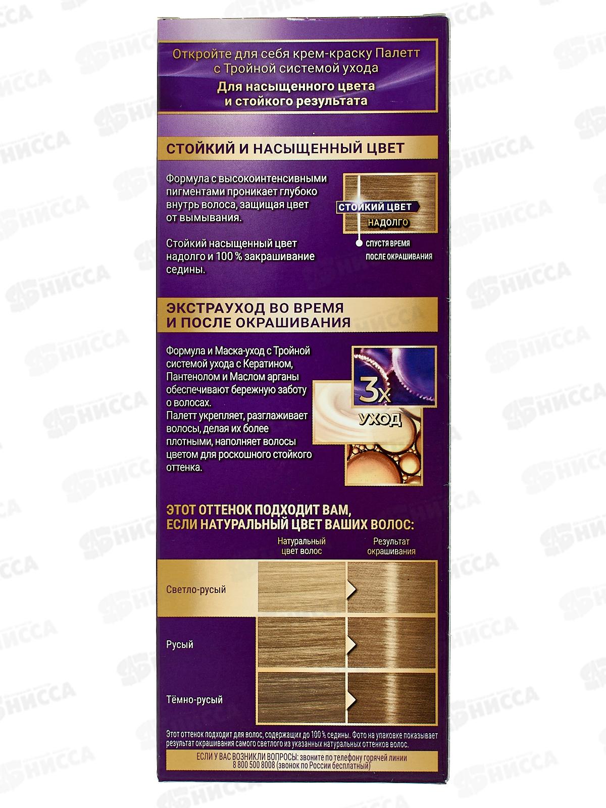 Комплектация: окрашивающий крем, проявляющая эмульсия, маска для волос, перчатки