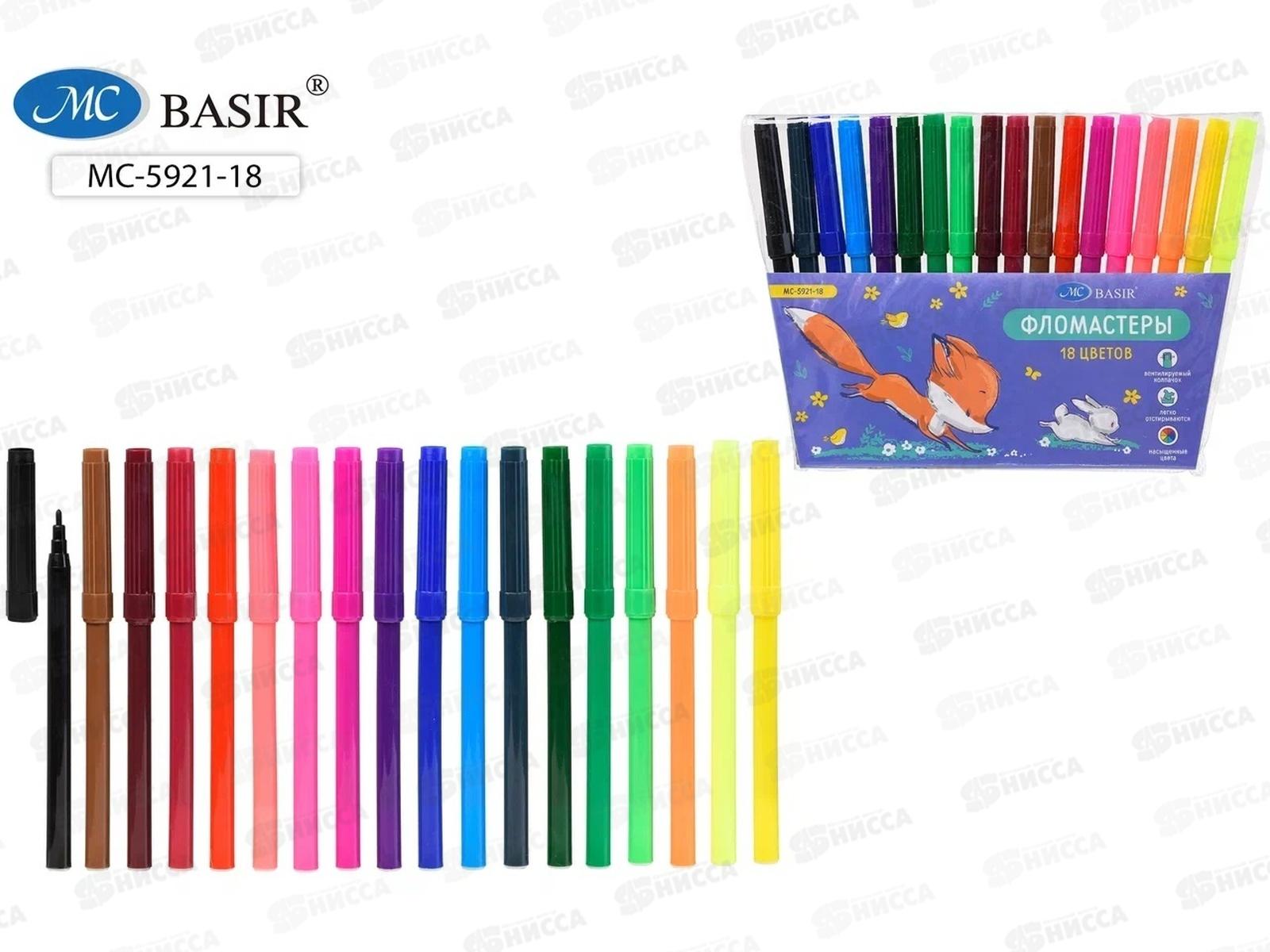 Код:459762; Фломастеры 18 цветов BASIR "Лисёнок" цв.корпус, вент.колп. MC-5921-18 *12/96