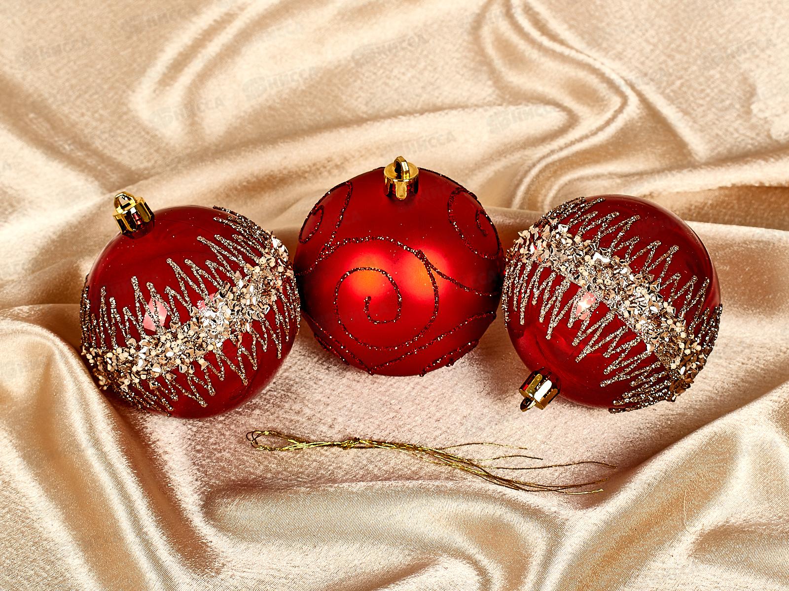 Код:502215; Набор шаров 3шт d8см Изящный, красный, SY2022DG-422 АТМ