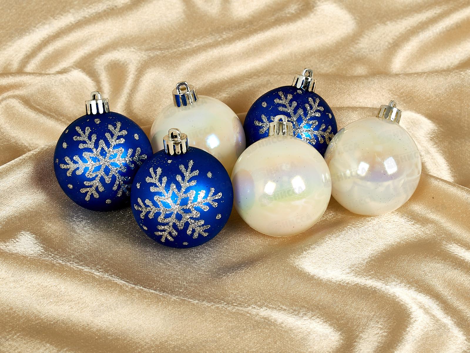 Код:502357; Набор шаров 6шт d6см, Роскошные снежинки, синий, SYQВ-0122205