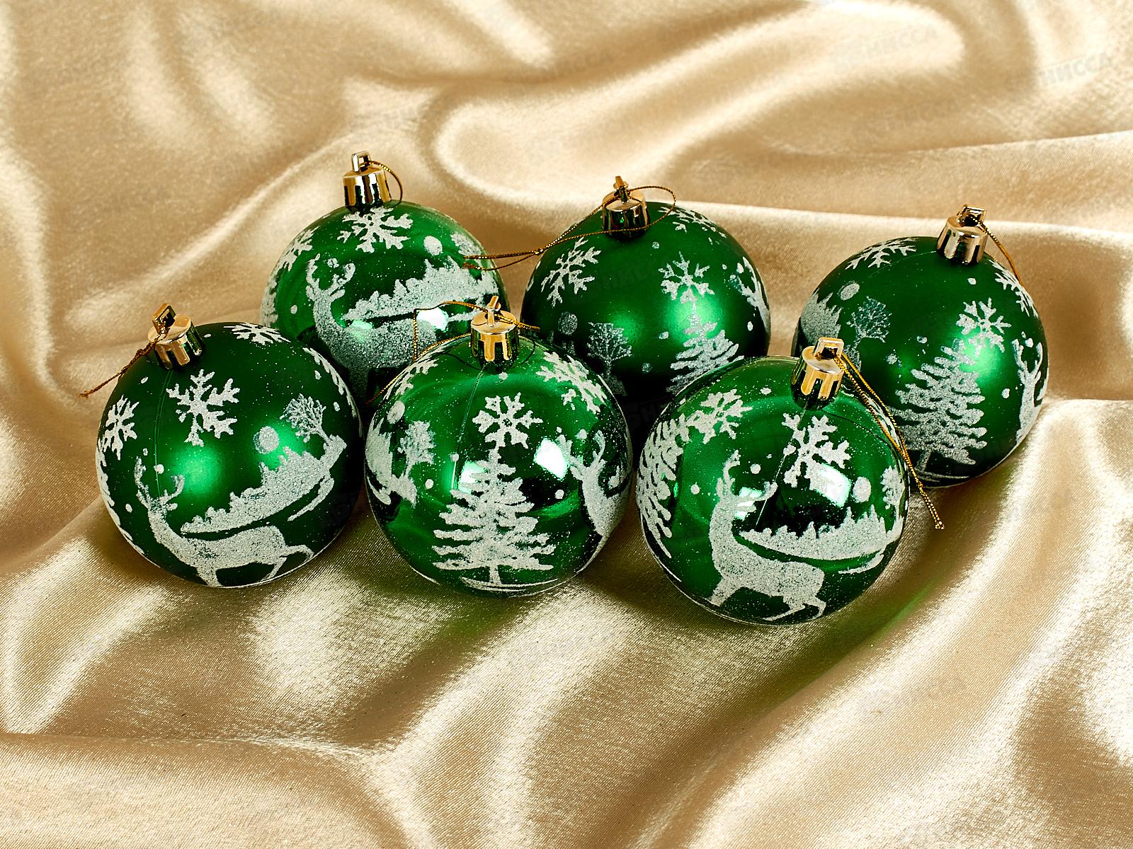 Код:543756; Набор шаров 6шт Олень в лесу d7см, зеленый, HV7006-1692A05 АТМ