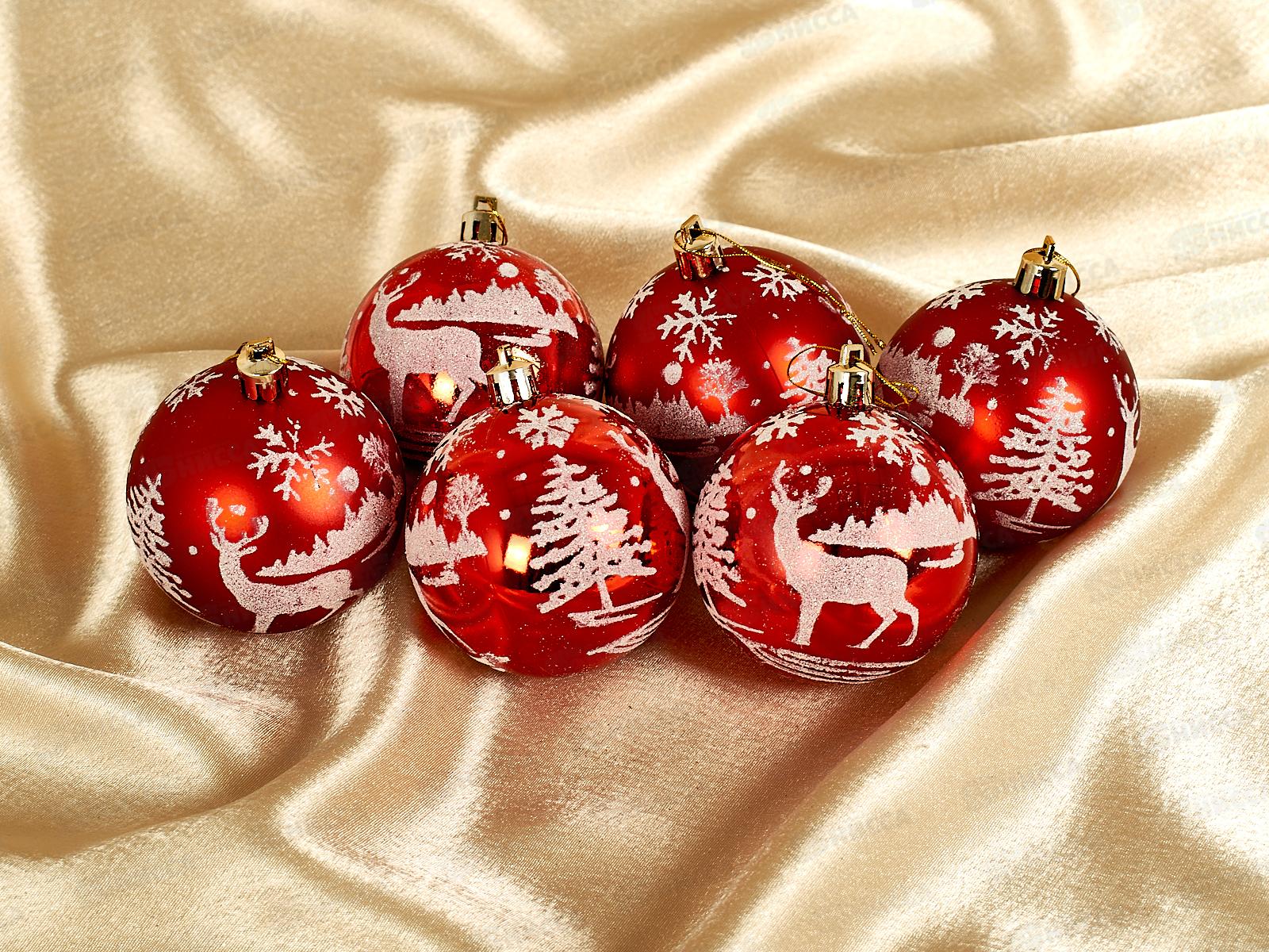 Код:543757; Набор шаров 6шт Олень в лесу d7см, красный, HV7006-1692A03 АТМ