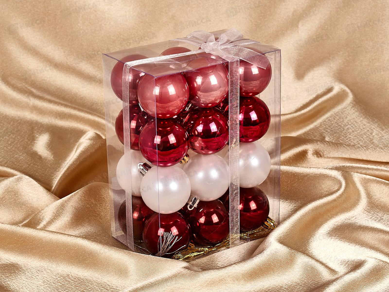 Набор шаров 24шт d5см, коралловый+красный+жемчужный+бургунди, SYQF-0122274