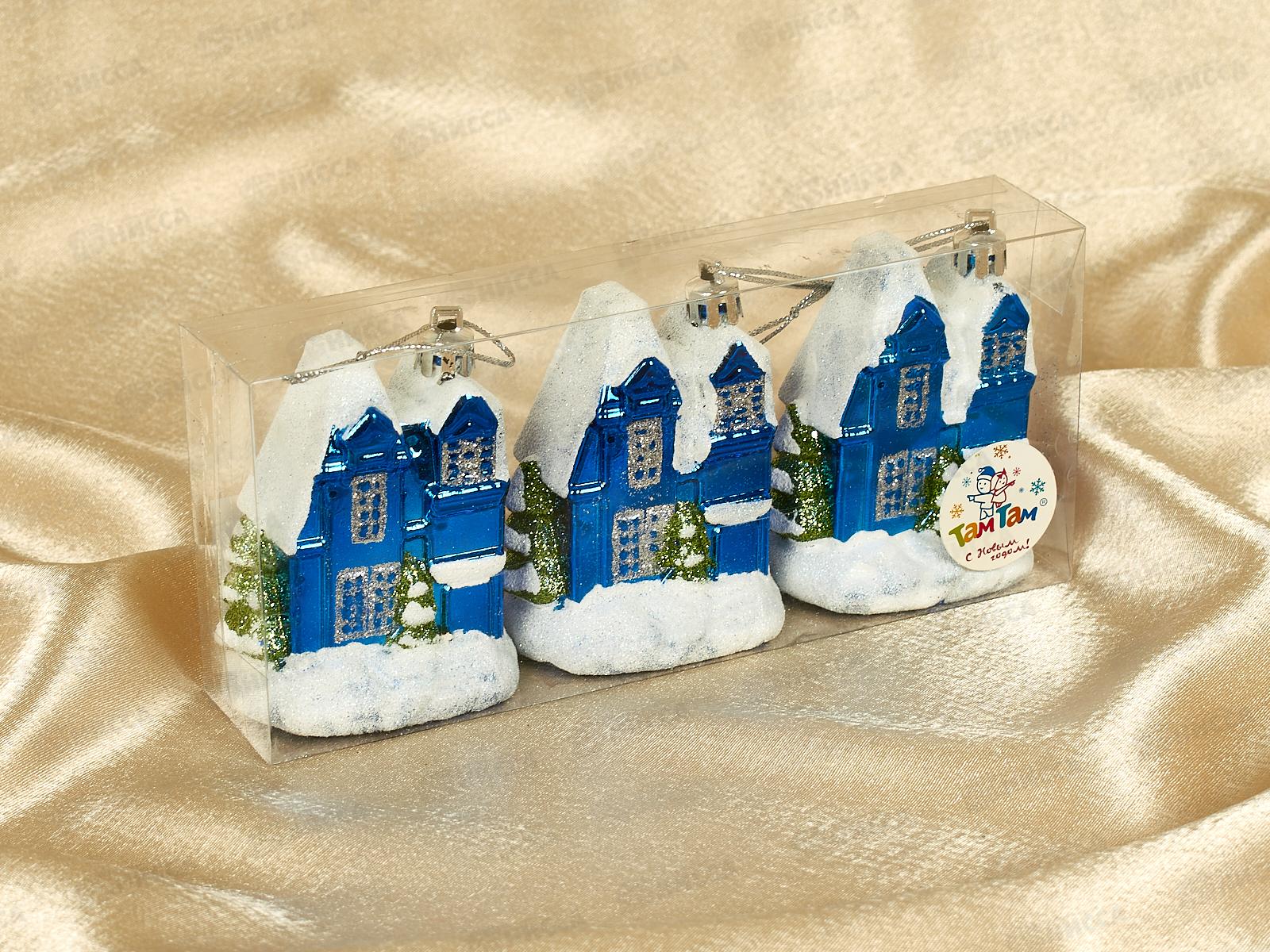 Елочные украшения 3шт Зимние дома, d8см, синий, HV8003-667/2S04 АТМ