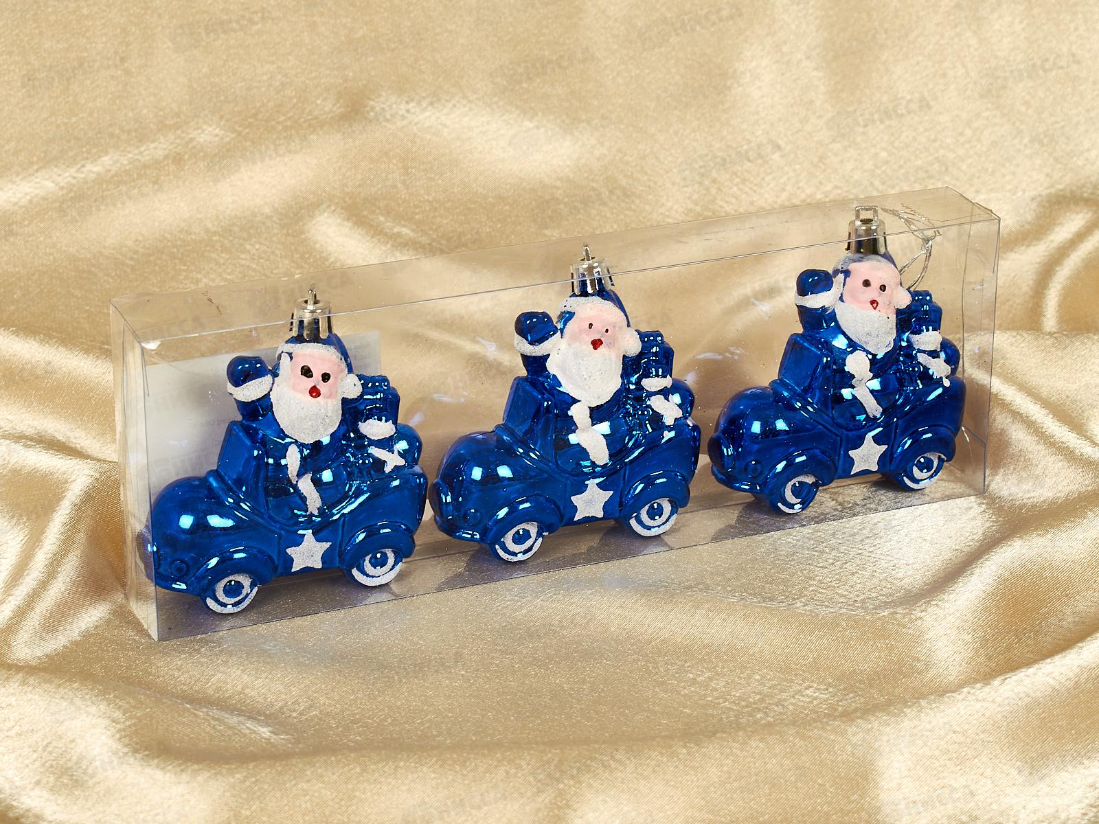 Елочные украшения 3шт Дед Мороз на машине синий, SYQC-0123163-2 АТМ