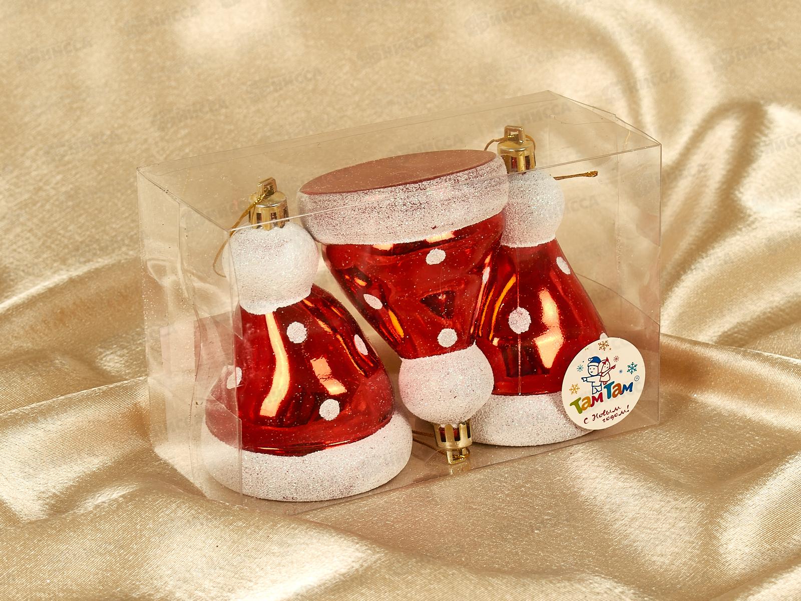 Елочные украшения Новогодние колпаки 3шт, d8см, красный, HV8003-470/1S03