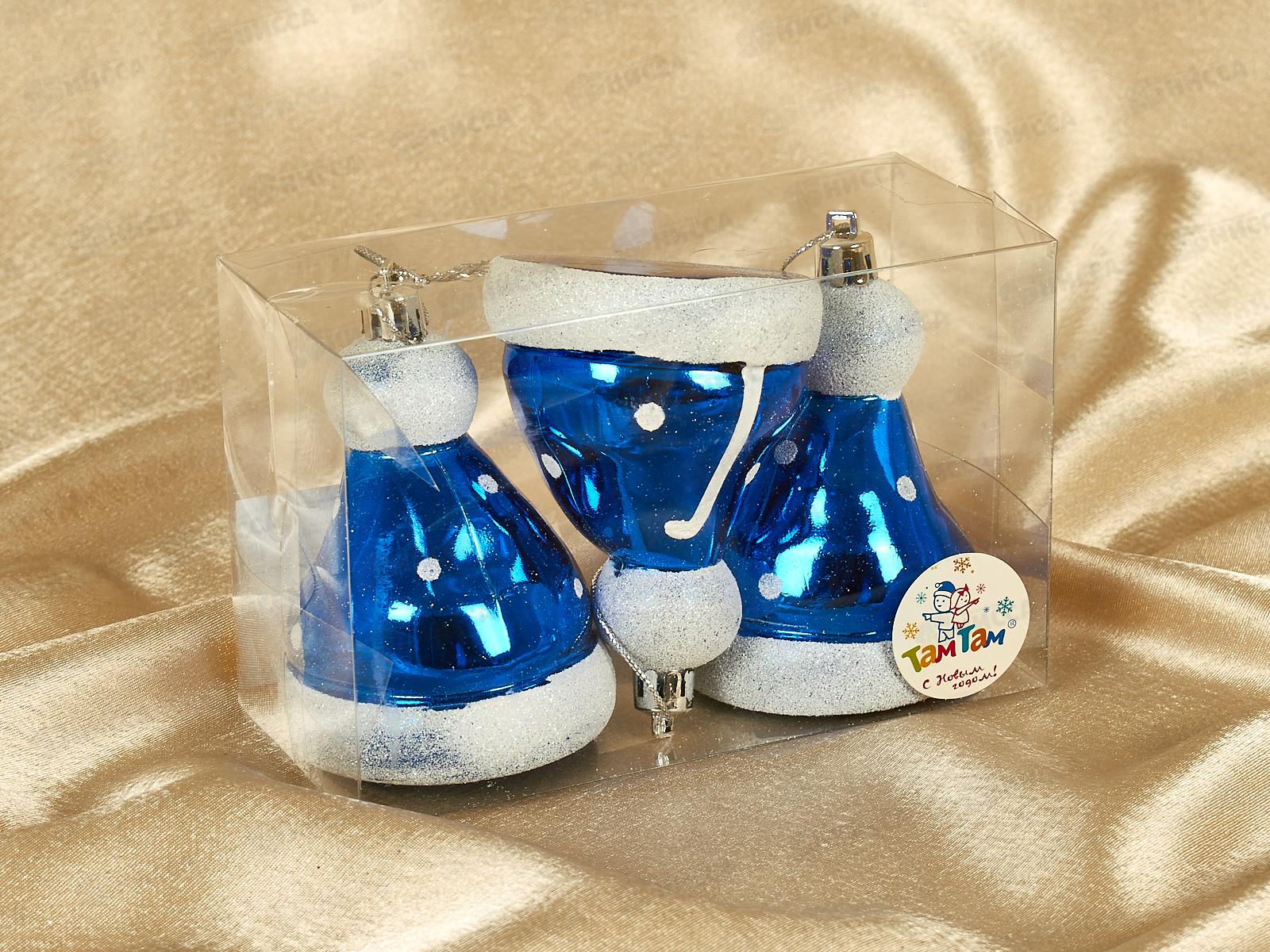 Елочные украшения Новогодние колпаки 3шт, d8см синий, HV8003-470/1S04