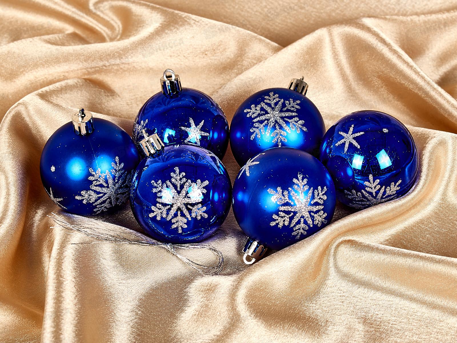 Код:502357; Набор шаров 6шт d6см, Роскошные снежинки, синий, SYQВ-0122205