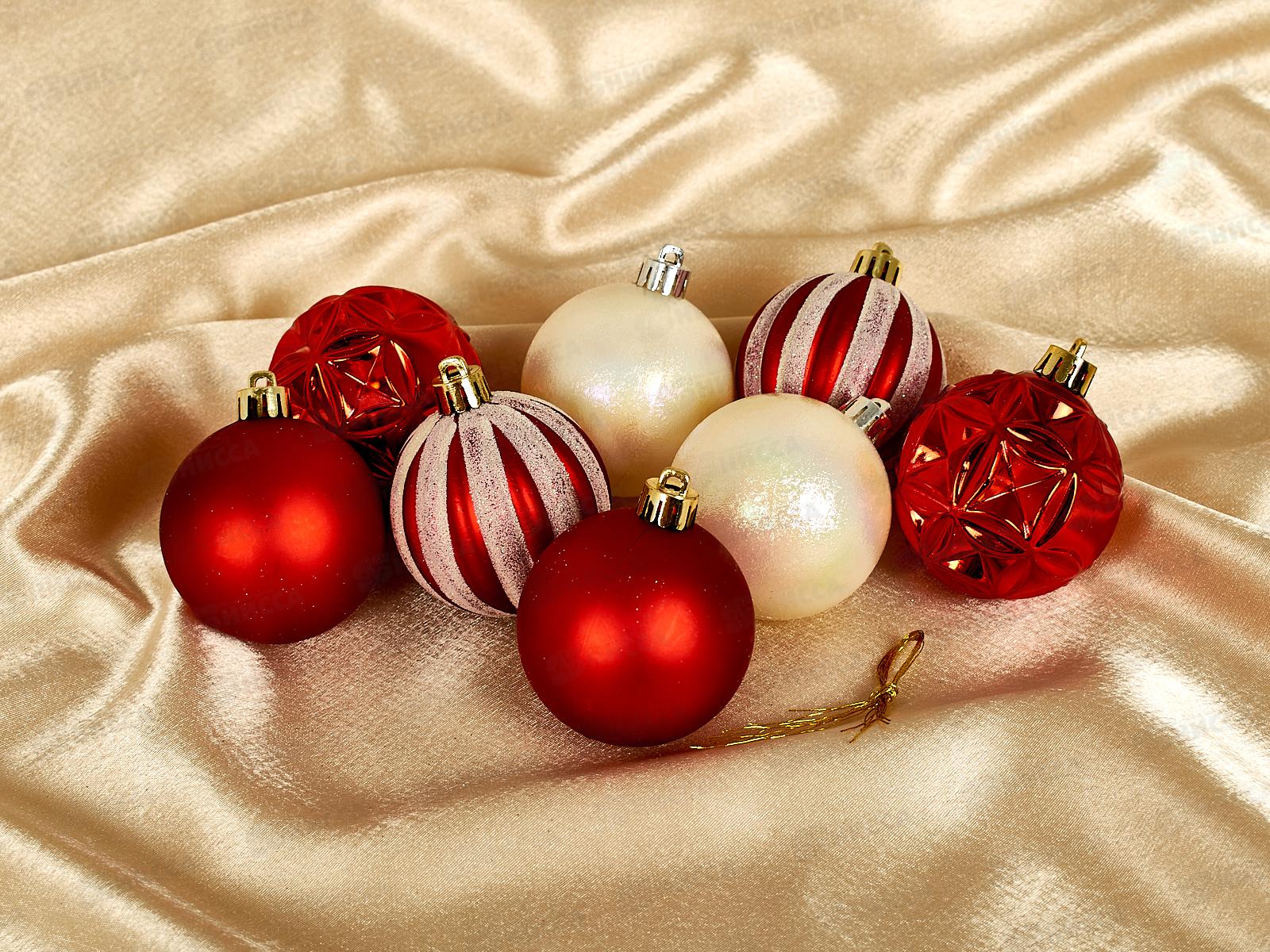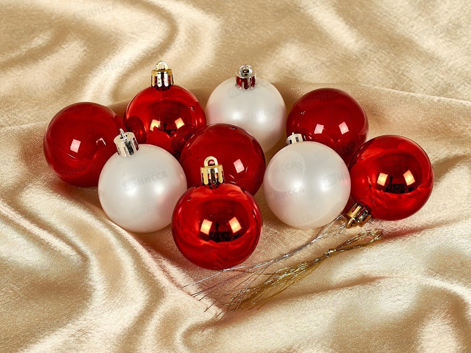 Код:548384; Набор шаров 9шт d5см, красный+жемчужный белый, SYQA-012248-1