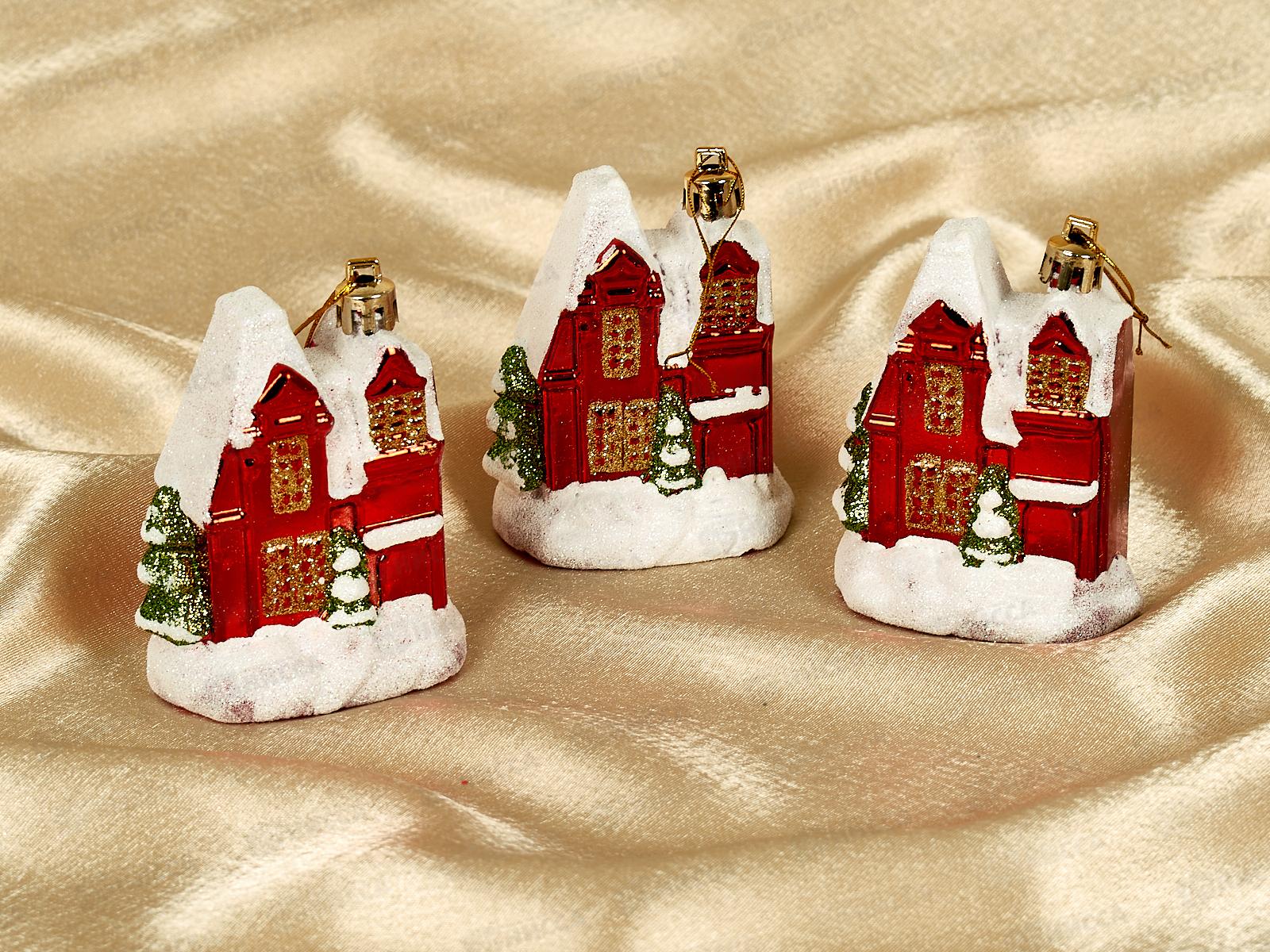 Код:543778; Елочные украшения 3шт Зимние дома, d8см, красный, HV8003-667/2S03 АТМ