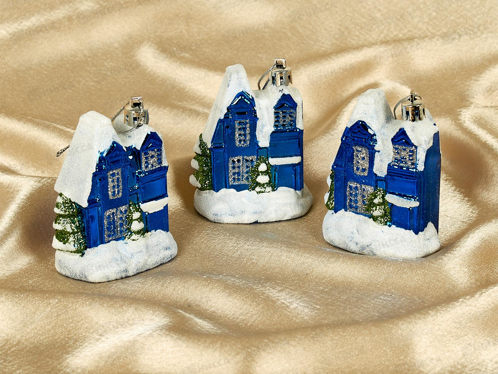 Код:543780; Елочные украшения 3шт Зимние дома, d8см, синий, HV8003-667/2S04 АТМ