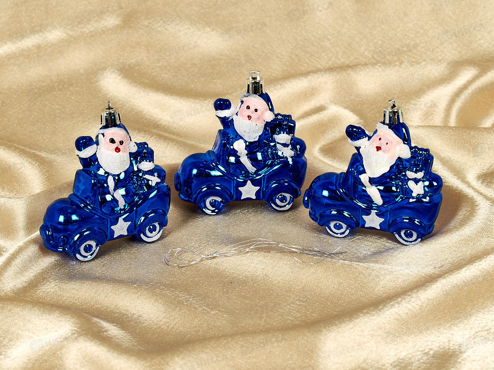 Код:543788; Елочные украшения 3шт Дед Мороз на машине синий, SYQC-0123163-2 АТМ