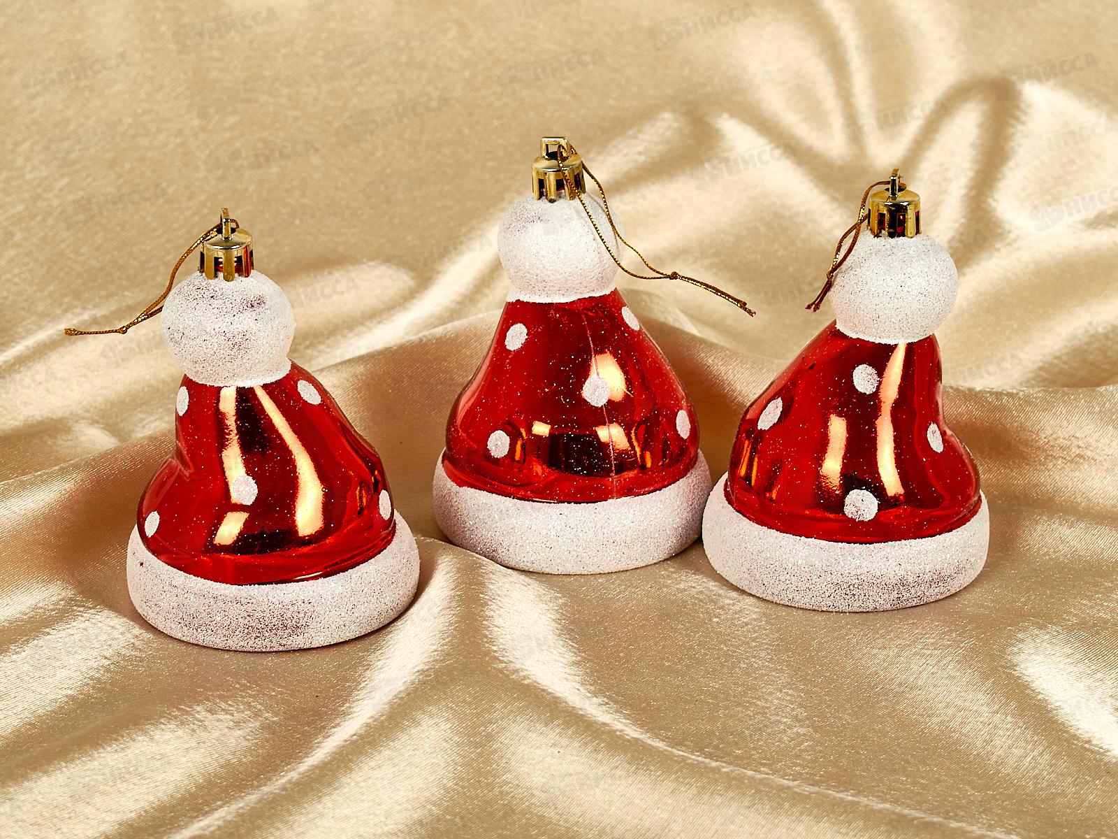 Код:543794; Елочные украшения Новогодние колпаки 3шт, d8см, красный, HV8003-470/1S03