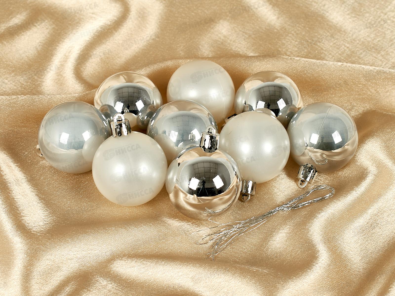 Код:548383; Набор шаров 9шт d5см, серебро+жемчужный белый, SYQA-012244