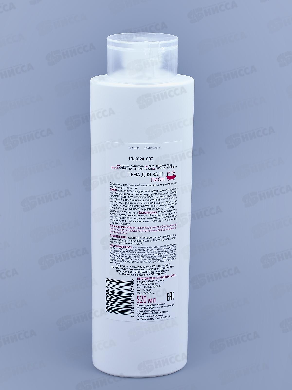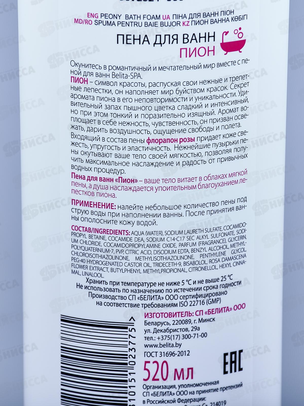 Belita SPA Пена для ванн Пион 520мл *12