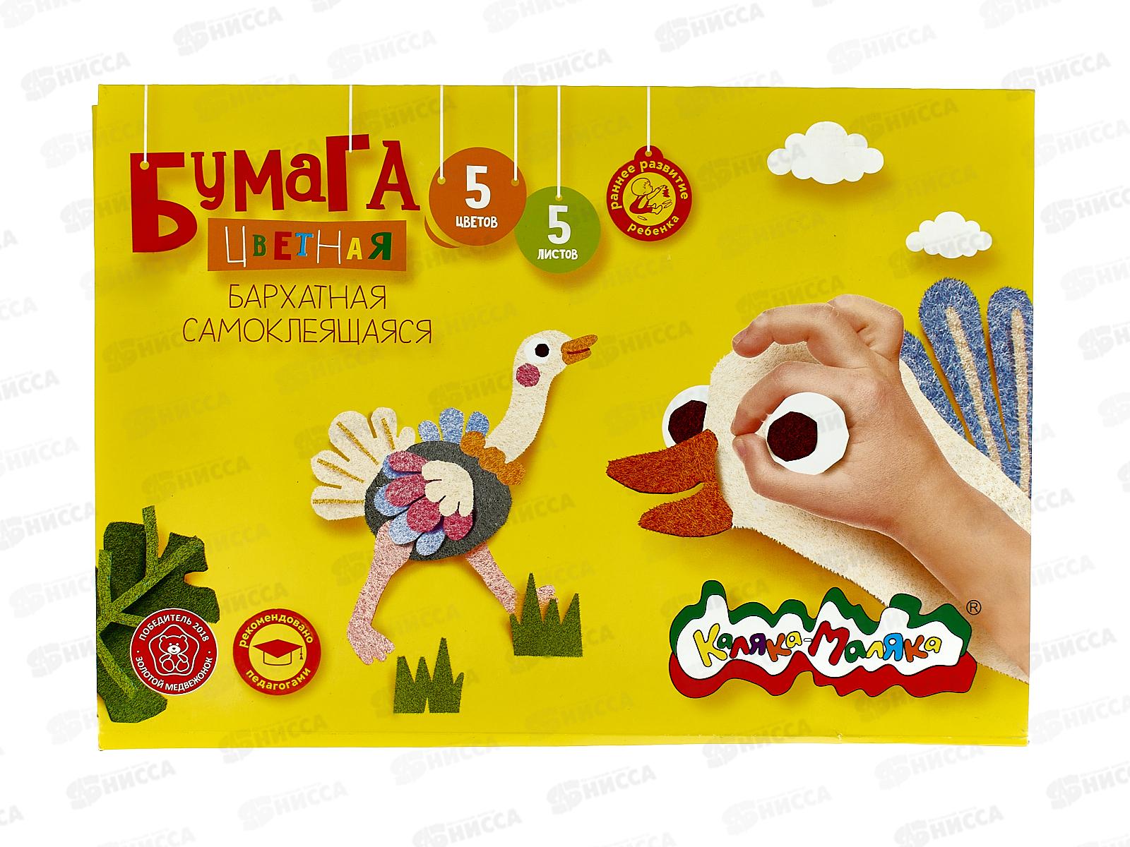 Код:304796; Цветная бумага самоклеющаяся бархатная 5листов 5цветов Каляка-Маляка 175*250, ББСКМ5-1 *100