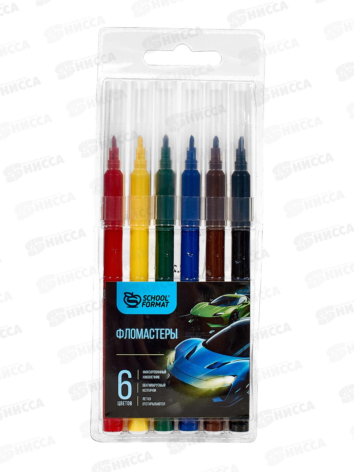 Код:527599; Фломастеры 6 цветов schoolФОРМАТ микс для мальчиков, на блистере, ФЛ06-МДМ *24