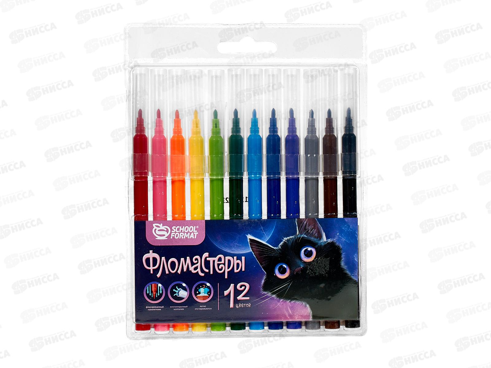Код:593124; Фломастеры 12цв. schoolФОРМАТ Микс для девочек. смыв. ФЛ12-МДВ *24