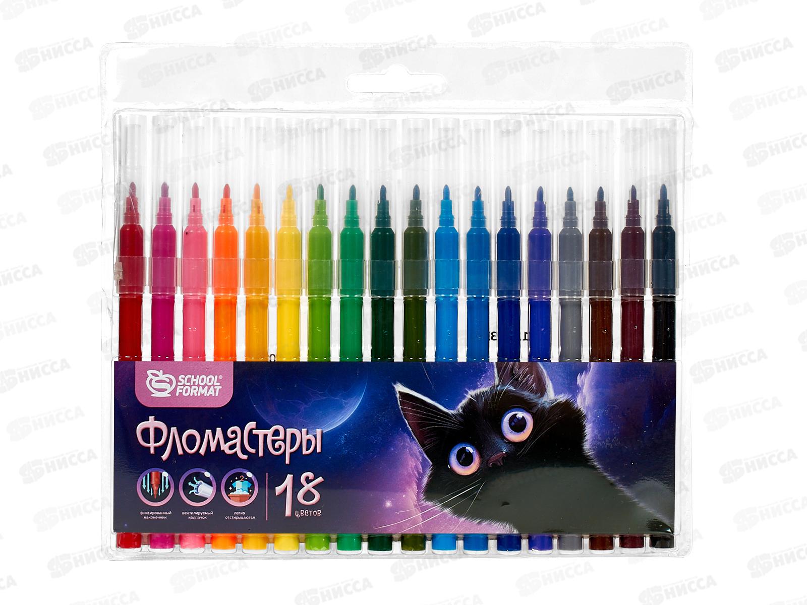 Код:527597; Фломастеры 18 цветов schoolФОРМАТ микс для мальчиков, блист., ФЛ18-МДМ *24/144