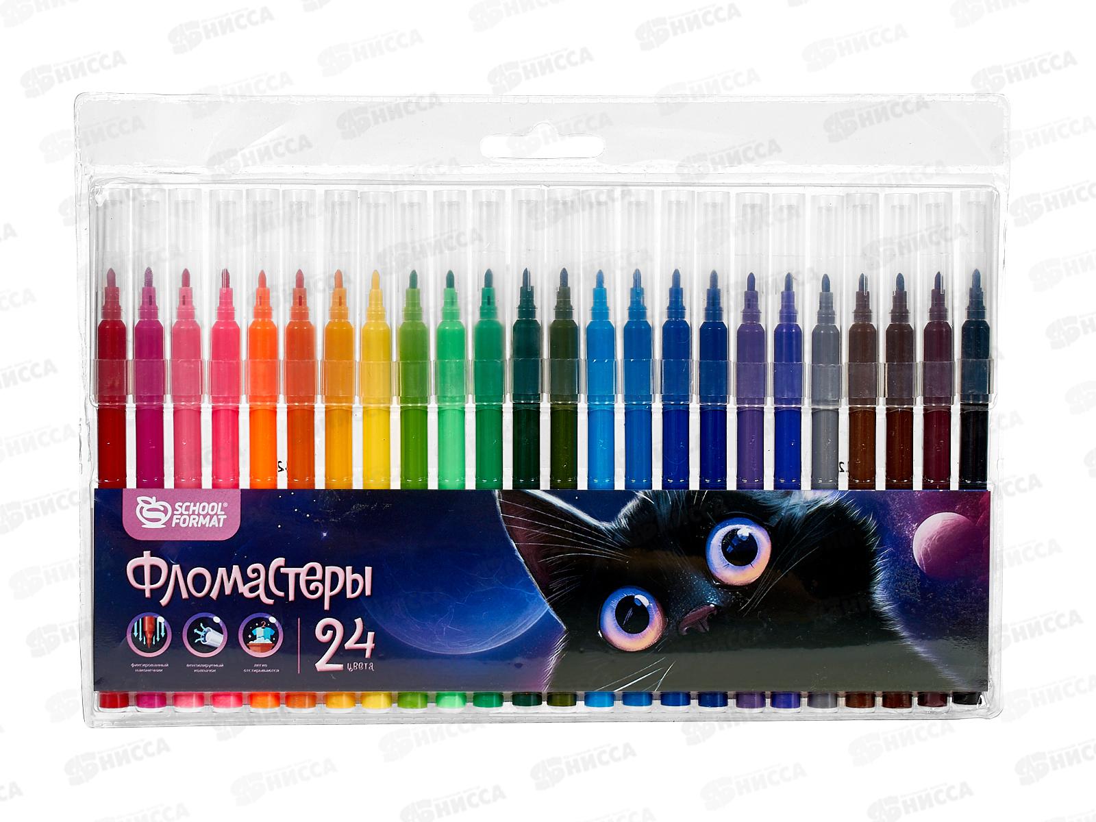 Код:527594; Фломастеры 24 цвета schoolФОРМАТ микс для девочек, блист., ФЛ24-МДД *24/96