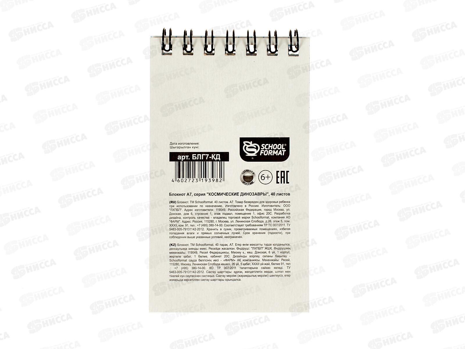 Блокнот 40л schoolФОРМАТ А7 Космические динозавры, греб., БЛГ7-КД *10