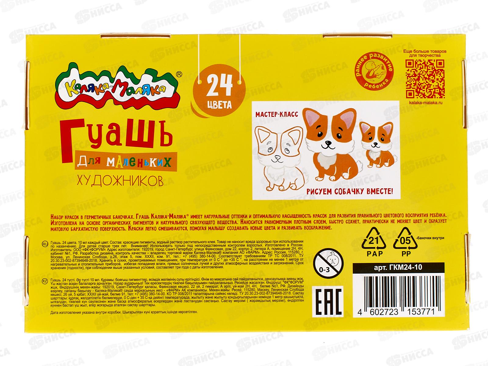 Гуашь Каляка-Маляка 10мл 24цв, Для самых маленьких ГКМ24-10 *24