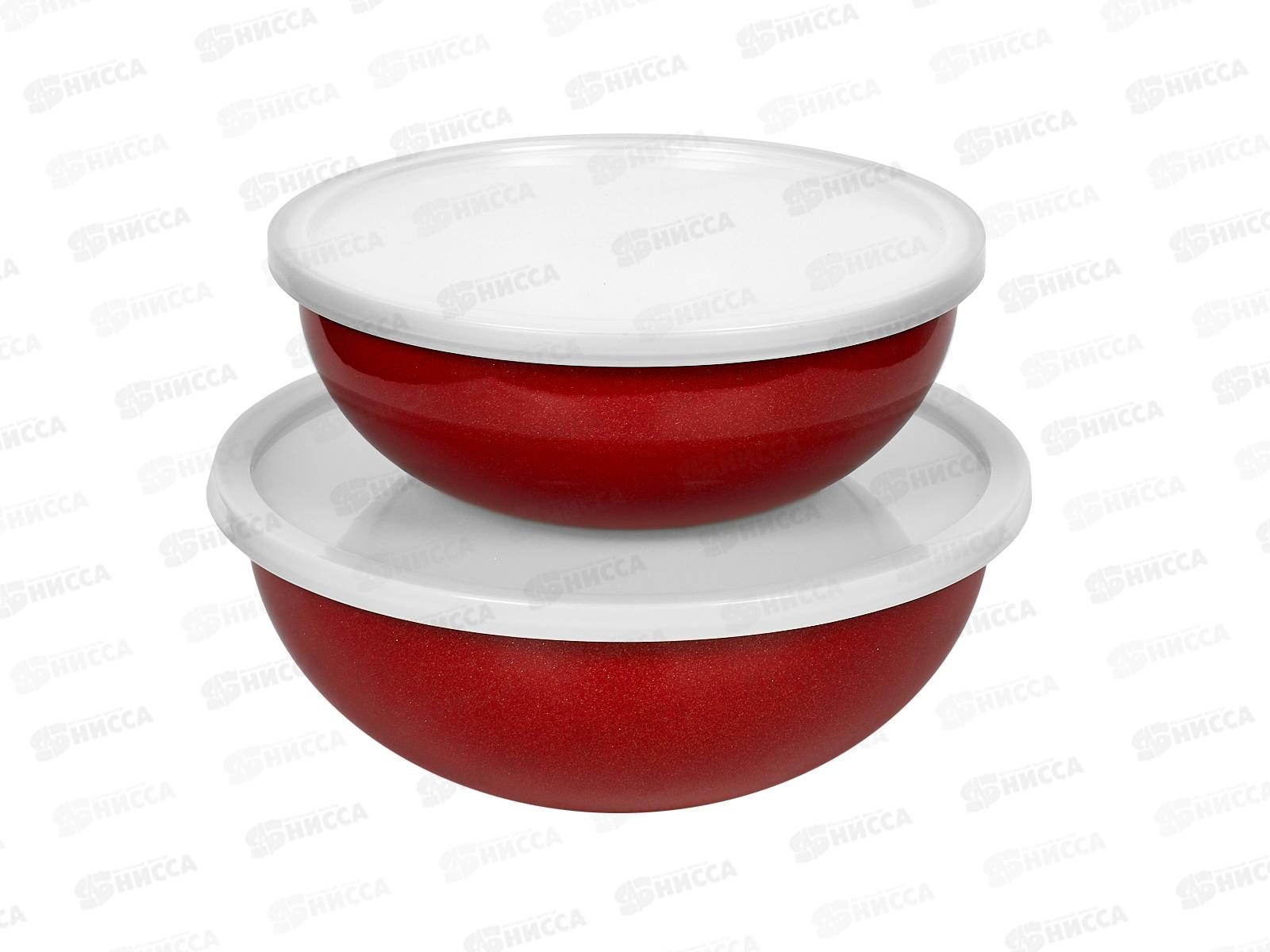 Код:462101; Набор мисок эмаль Deluxe с пластик крышками 4ро красный 901-056