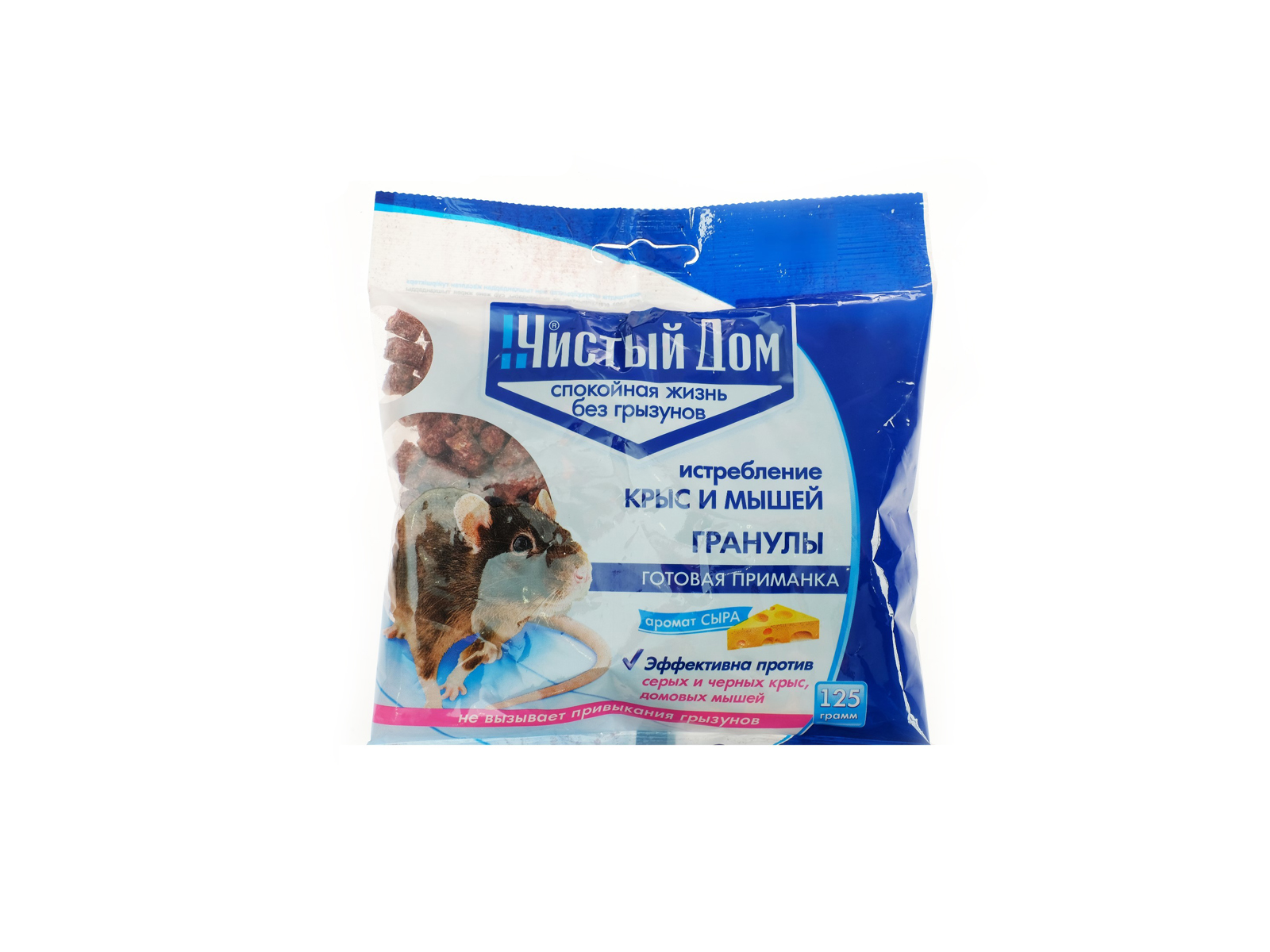 Код:352066; Чистый дом гранулы от крыс и мышей с запахом сыра 125гр *50