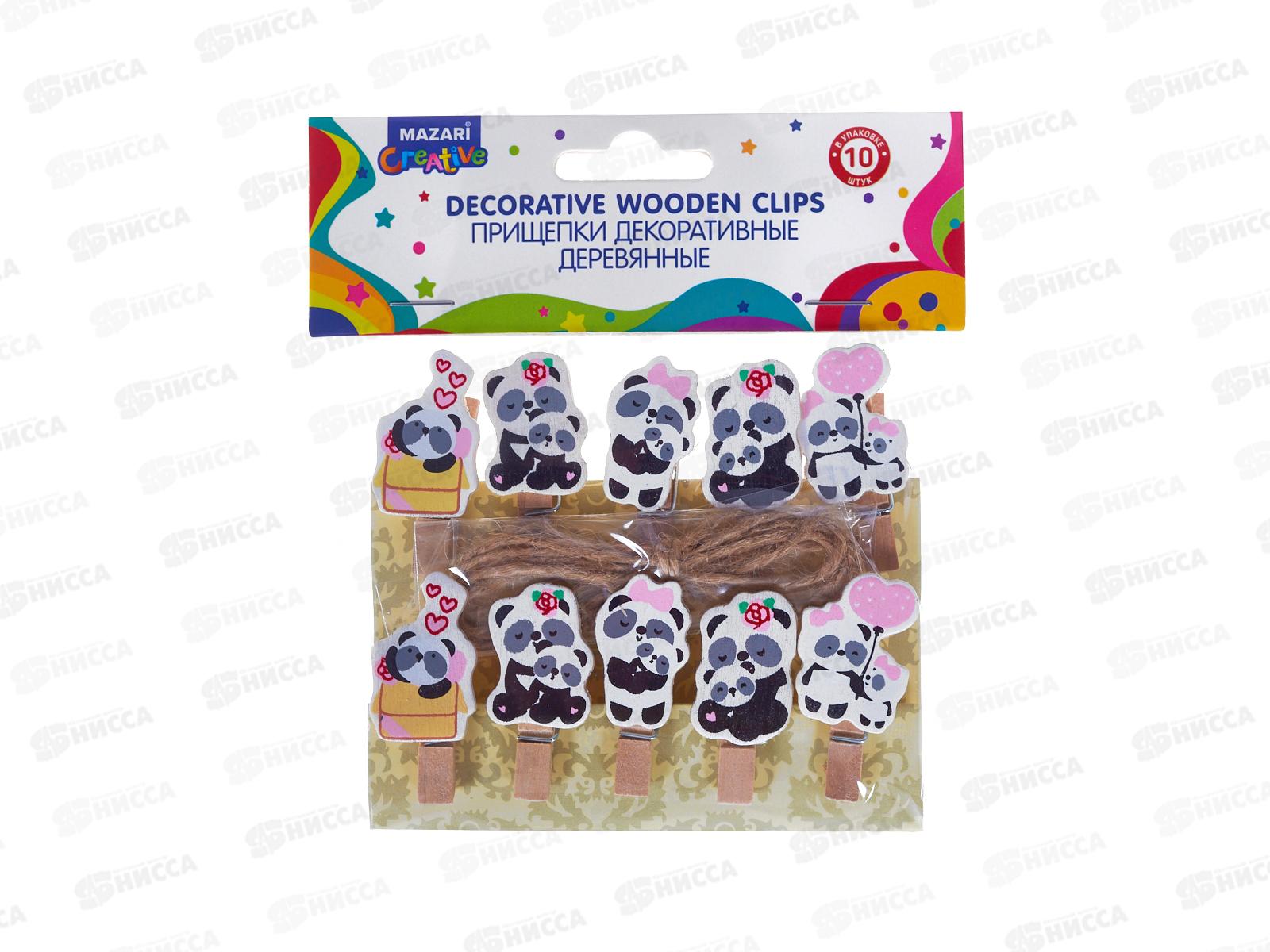 Код:595213; Прищепки декор. Pandas деревян. 3,5*07см 10шт. М-1536 *12