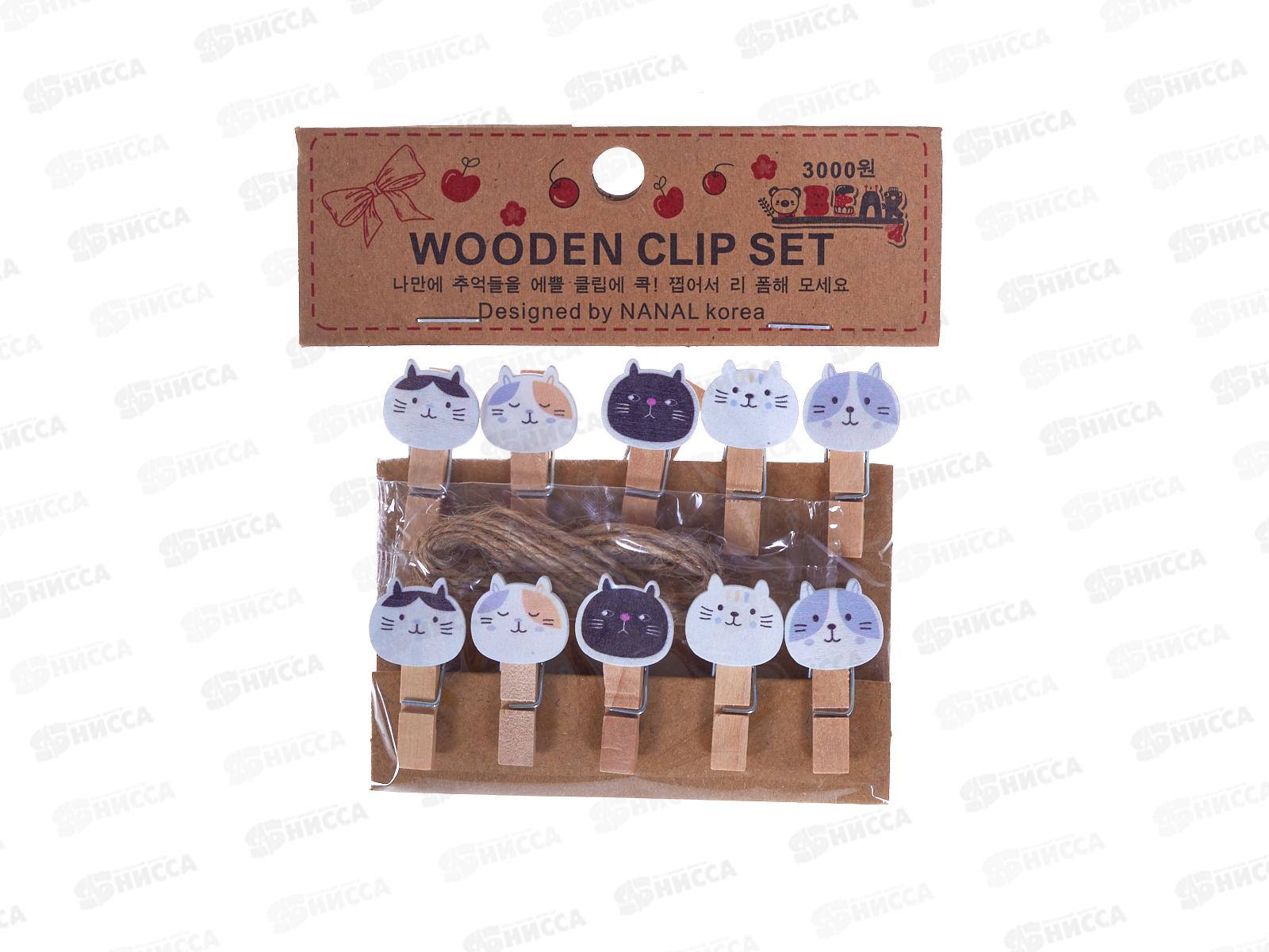 Код:595215; Прищепки декор. Котики деревян. 3,5*07см 10шт. М-1545 *12