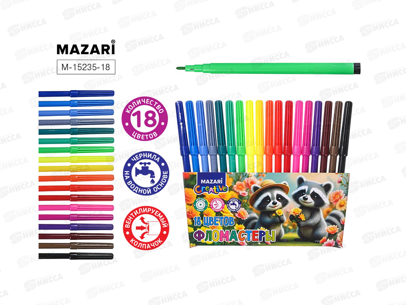 Код:606263; Фломастеры 18цв. MAZARI Енот невент.колп., п/у, M-15235-18 *12/120